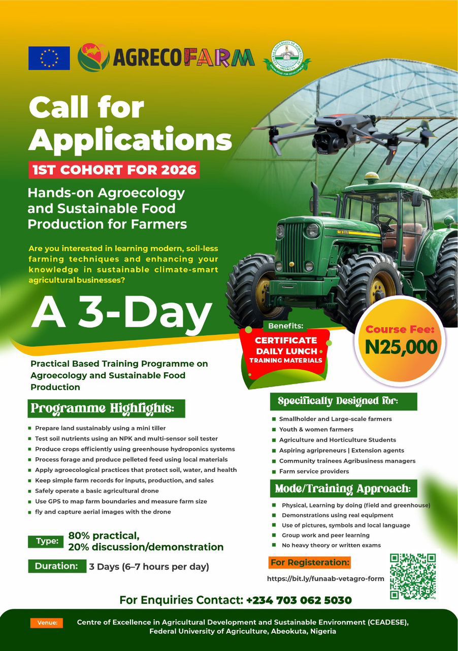📍 Venue: AGRECOFARM Lab, CEADESE, Federal University of Agriculture (FUNAAB), Abeokuta