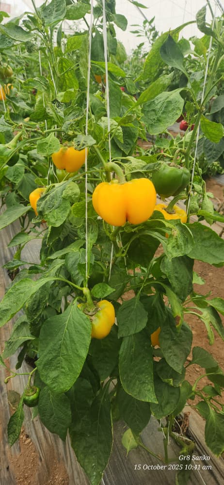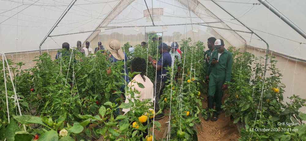 Participants were taken on a guided tour of the greenhouse, where the different species of Bell pepper were grown, and an open-field demonstration plot, where they observed different crop varieties and irrigation models in action. The event also highlighted best practices in climate-smart agriculture, record-keeping, and market-oriented production.