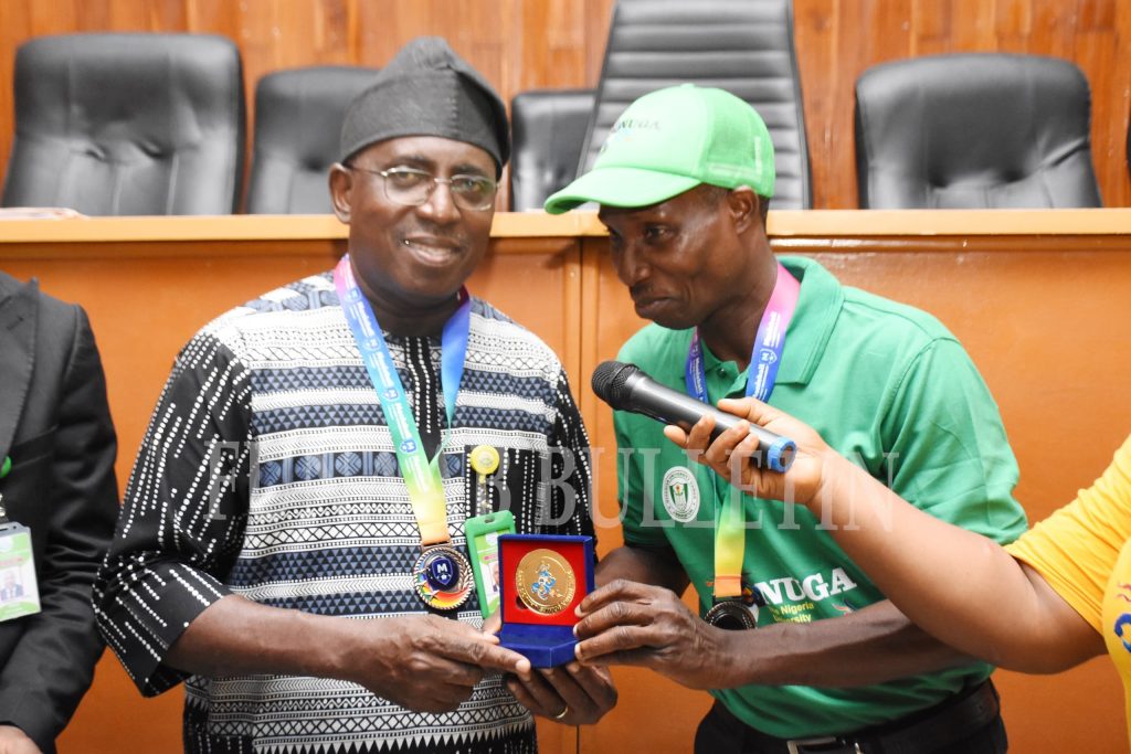 The event featured the formal presentation of medals to the NUGA and Monieball contingents, as well as the decoration of the Vice-Chancellor with commemorative medals in appreciation of his steady support for sports development at FUNAAB.